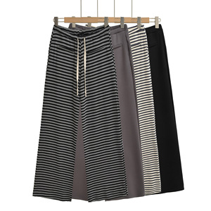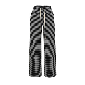 2025秋季垂感懒懒裤条纹高腰抽绳系带百搭休闲显瘦宽松直筒阔腿裤