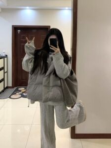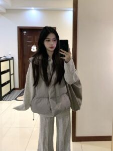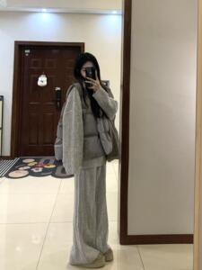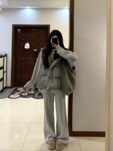 慵懒风穿搭套装女秋冬韩系棉服保暖马甲高领针织毛衣阔腿裤三件套