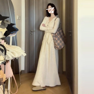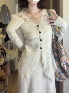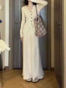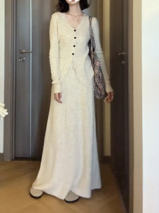 针织连衣裙女2025秋冬新款小香风高级感气质修身开衫长裙子两件套