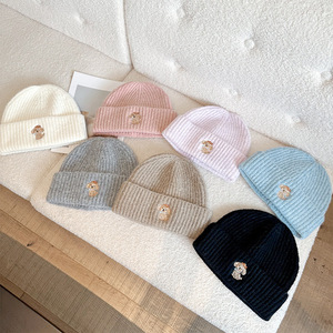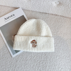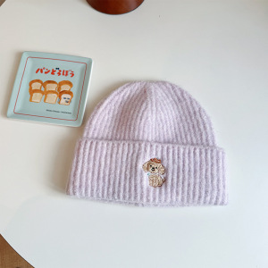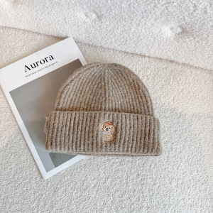 秋冬时尚保暖针织帽休闲百搭户外防风毛线帽小狗刺绣男女护耳冷帽
