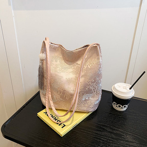 新款高级感大容量国风单肩包新中式山水刺绣腋下包简约托特包女