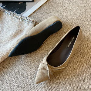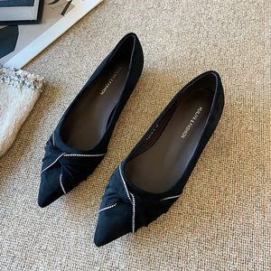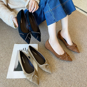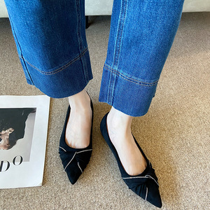 Y2777-5尖头单鞋女平底2025秋新款百搭法式浅口豆豆瓢鞋工作船鞋