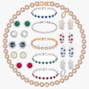 跨境施家罗马 Una系列项链套装水晶镶嵌圆形切割耀眼魅力手链耳钉
