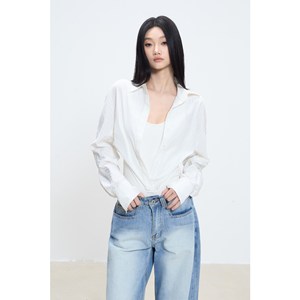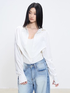 WITHMIN 衬衫女秋季2025新款显瘦百搭韩系假两件白色上衣长袖女装