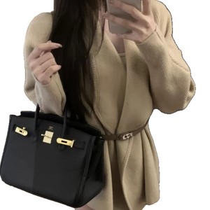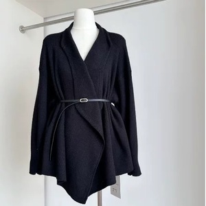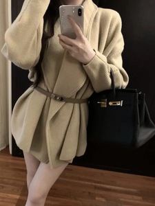韩系大翻领时尚气质针织开衫女秋冬新款中长款宽松毛衣外套女