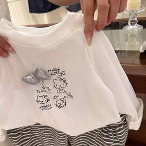 【粉红屋】女童春秋季套装儿童可爱韩版长袖T恤上衣条纹长裤跨境