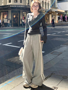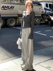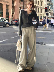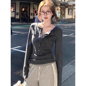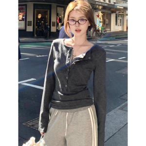 韩系小众纽扣排扣半开领设计长袖t恤女秋季新款假两件针织衫上衣
