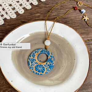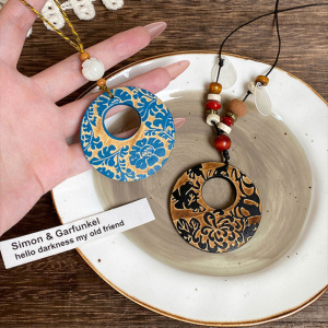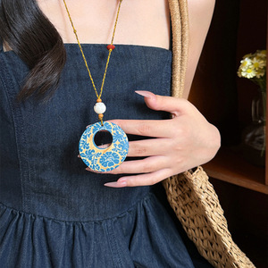 木落雁南~青花瓷平安扣吊坠项链女2025新款国风长款小众设计配饰