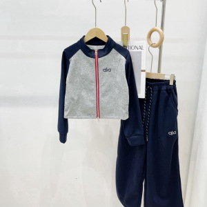 091603 儿童秋款美式学院风灰色拉链外套裤子运动套装 一件代发!