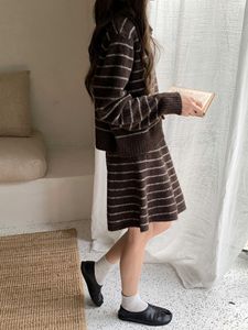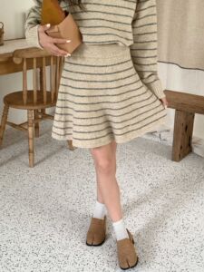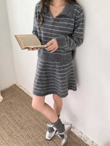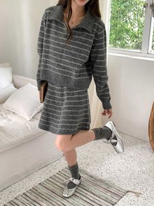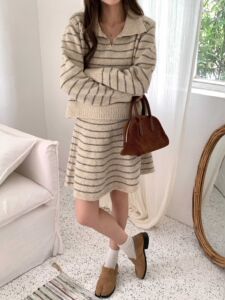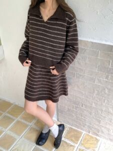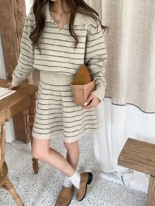 嘉织丨韩版条纹休闲POLO领 +短裙针织 美式休闲运动套装女GT60