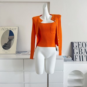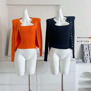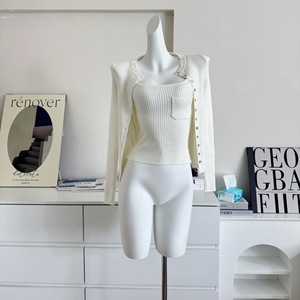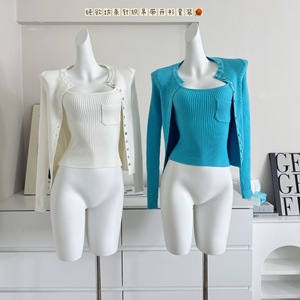 显白纯欲设计感纽扣纯色两件套吊带针织开衫套装2025秋季新款
