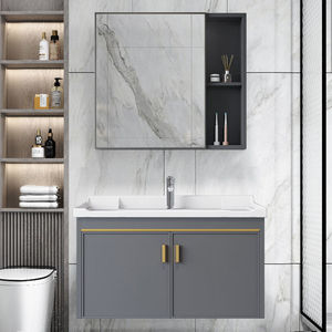 60*47岩板盆柜-全套配件+毛巾杆镜柜