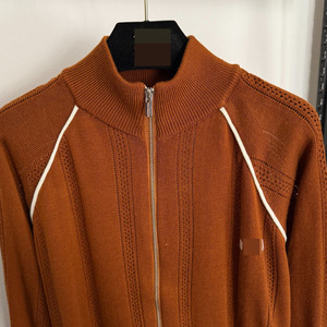 2025秋冬南油高端独立站女新款logo拉链立领长袖针织开衫拉链外套