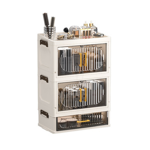 桌面收纳盒多层抽屉式化妆品置物架塑料防尘透明多功能桌面化妆柜