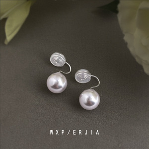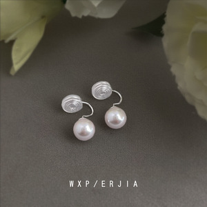 曼塔玫瑰粉紫色玻璃珍珠蚊香盘耳夹女清新甜美显脸小无耳洞耳饰品