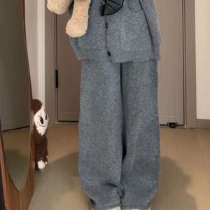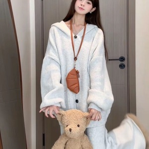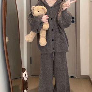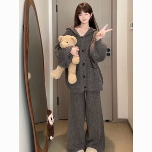 濮院毛衫厂 2025秋冬新款复古慵懒宽松连帽新款简约休闲两件套女