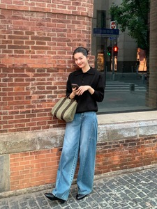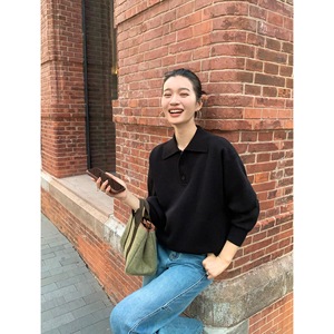 pusumede 简约都市 polo领针织衫女秋冬宽松慵懒毛衣外搭长袖上衣