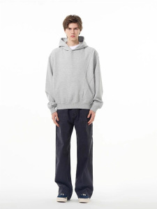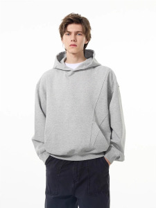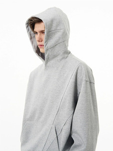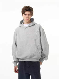 春季新款灰色连帽卫衣男款分割解构boxy宽松短款廓形套头帽衫上衣