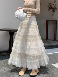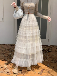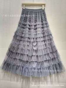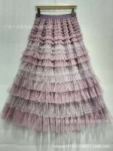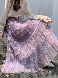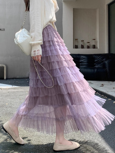 仙气重工紫色渐变网纱蛋糕裙半身裙女秋长款设计感显瘦大摆长裙