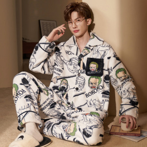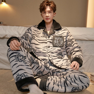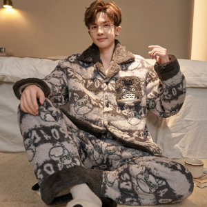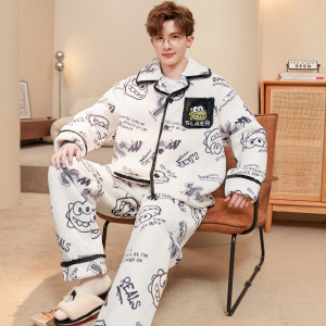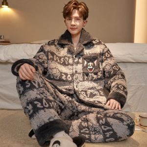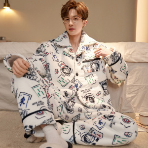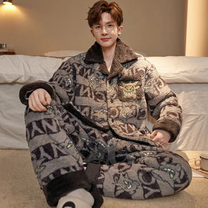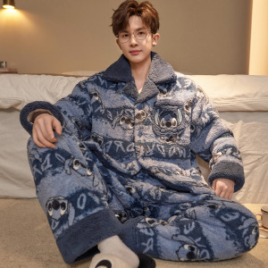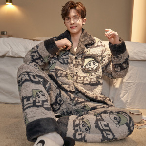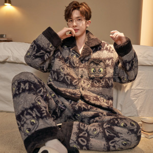 珊瑚绒睡衣男款冬季加厚加绒青少年2025年新款男士开衫冬天家居服