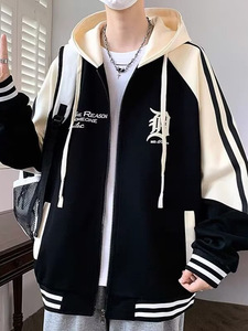 港风潮牌拉链卫衣外套男2025秋季新款学生美式宽松连帽开衫棒球服