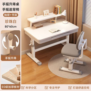 2025新款儿童学习桌可升降家用书桌手摇升降桌椅套装书桌学生