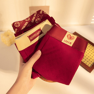 新款本命年男士内裤男纯棉舒适透气提花平角裤结婚喜庆男款四角裤