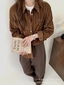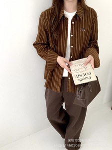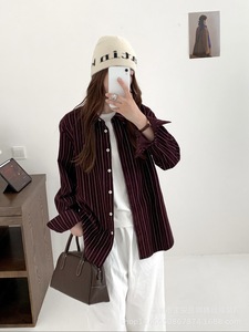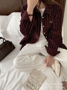 琪镌绘制早秋款甜美翻领条纹宽松百搭通勤长袖衬衫女打底衫82210