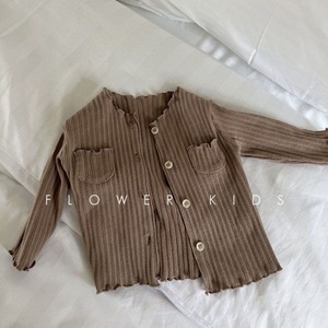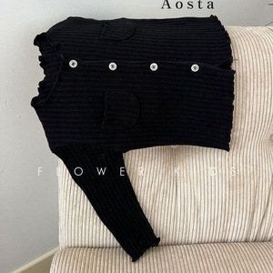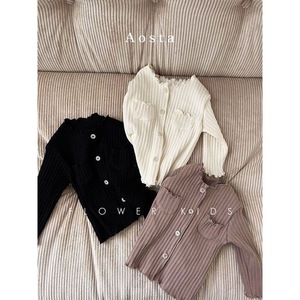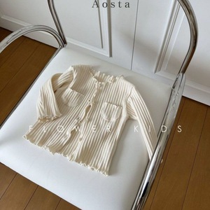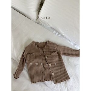 韩国童装秋新女童宝宝木耳花边坑条棉外穿开衫洋气小外套上衣耐用