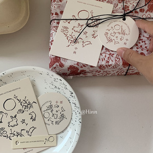 国风手绘中秋节卡片~原创烘焙月饼礼盒吊牌礼物节日祝福挂饰
