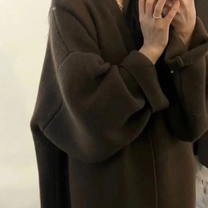 高级显瘦针织开衫毛衣女中长款秋冬纯色慵懒过膝宽松大衣大版外套