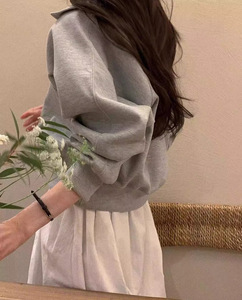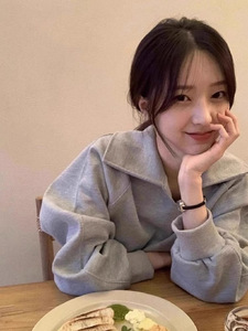 美式复古灰色翻领卫衣女春秋季小个子外穿休闲慵懒风宽松短款上衣