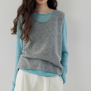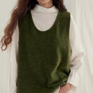 羊毛+兔毛U领可调节后开衩两穿针织马甲