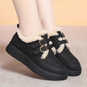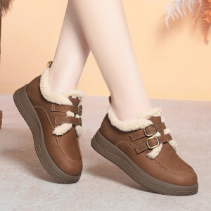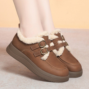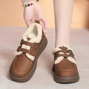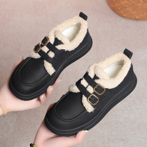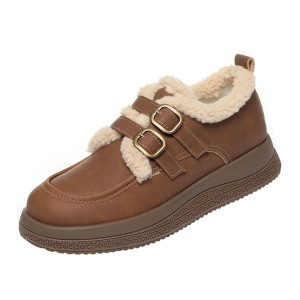 一件代发棕色毛毛鞋女冬季雪地棉鞋松糕厚底乐福鞋英伦加绒小皮鞋