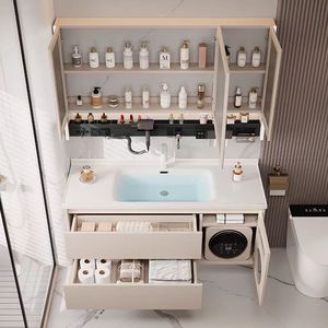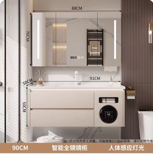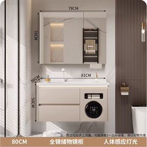 北欧小洗衣机洗烘一体浴室柜洗手洗脸陶瓷盆组合卫生间智能洗漱台