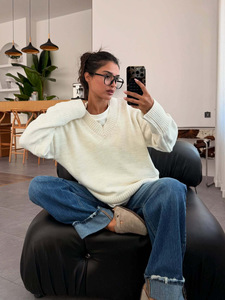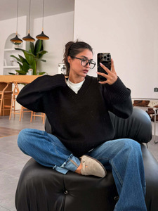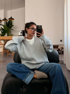 美式复古街头风纯色V领毛衣女秋冬保暖慵懒垂感长袖毛织上衣外套