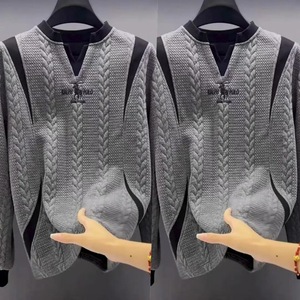 新款潮牌时尚痞帅百搭套头圆领秋季宽松长袖百搭条纹上衣男士卫衣
