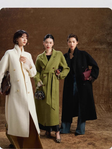 鹭青一原创【苍络】100羊毛双面呢大衣女冬复古系带长款气质外套