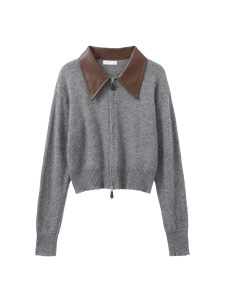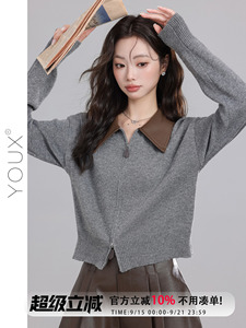 又巷【小巷秋】开衫外搭2025秋季新款复古宽松拼接polo领针织衫女
