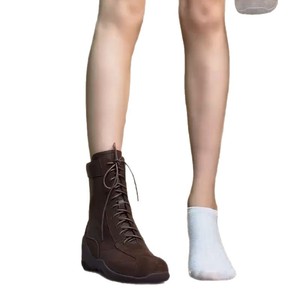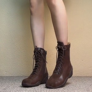 软皮版!马丁靴女2025新款复古风棕色绒面侧拉链松糕底绑带拳击靴