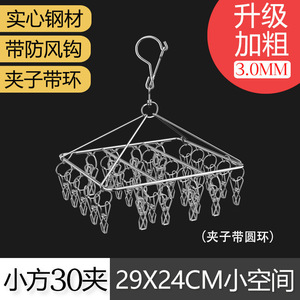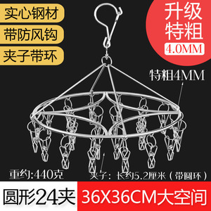 晾袜子衣架多夹子防风家用圆盘特粗不锈钢晾衣夹挂钩晒衣架无