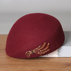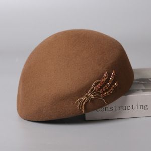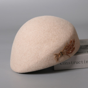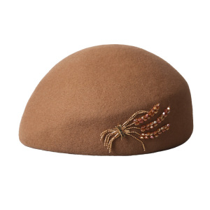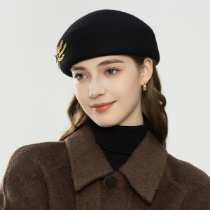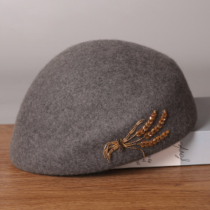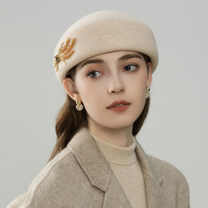 秋冬季新款澳洲美利奴羊毛帽麦穗装饰贝雷帽气质优雅女士帽子批发
