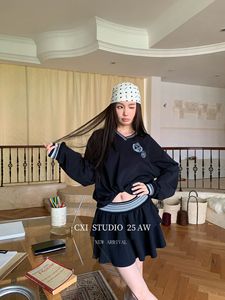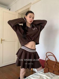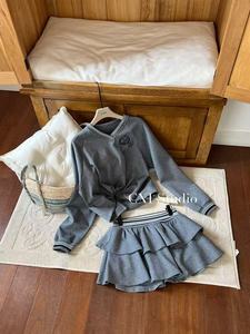 CXI 学院风休闲套装女秋季甜辣运动长袖卫衣修身显瘦蛋糕裙两件套