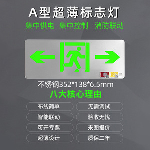 井伦新国标消防应急照明灯a型集中控制不锈钢36v安全出口指示灯