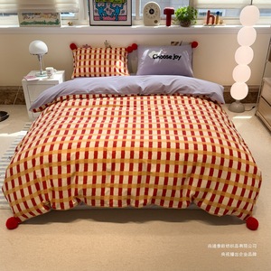 【香龄优品】ins风多巴胺全棉磨毛球球工艺款四件套床单被套床品