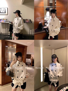 板栗可可Bankelili'衰败城市'秋季设计感新款立领双排扣风衣外套