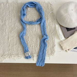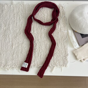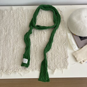 老钱风复古麻花时髦感细窄长条小围巾女秋冬腊肠针织装饰叠搭围脖