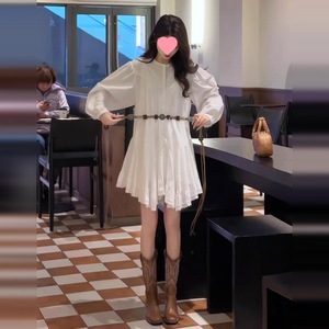 跨境小个子白色长袖衬衫连衣裙子女夏5新韩系氛围感早秋穿搭短裙