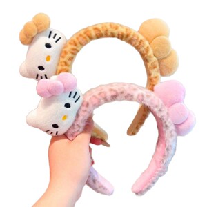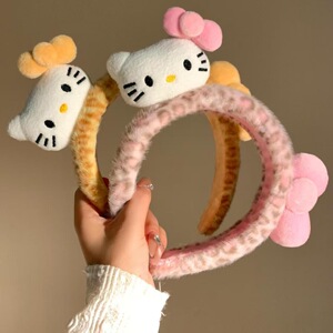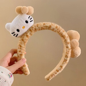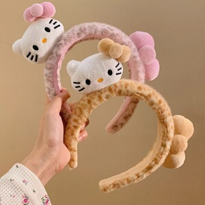 可爱豹纹Kitty猫蝴蝶结毛绒发箍女卡通可爱头箍洗脸发卡秋冬头饰