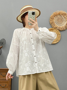 86312甜美立领重工绣花长袖衬衫 女2025秋装新款宽松显瘦小衫批发